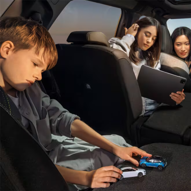 Im E-5008 erwartet die Insassen ein hochmodernes Infotainment-System. Das PEUGEOT i-Connect® Advanced System bietet nahtlose Smartphone-Integration und vernetzte 3D-Navigation. Etliche USB-C-Anschlüsse und eine induktive Ladestation sorgen dafür, dass alle Geräte stets einsatzbereit sind.